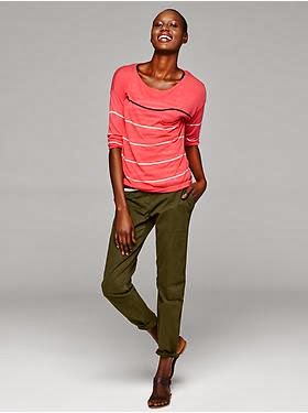 In the warmer months, all I want to do when I'm not at work is slip on something easy like a t-shirt or tank top and be out the door-to the farmer's market, to the dog park, wherever. I find that I want to stockpile basic v-neck t-shirts that are soft and that I can wear over and over again.