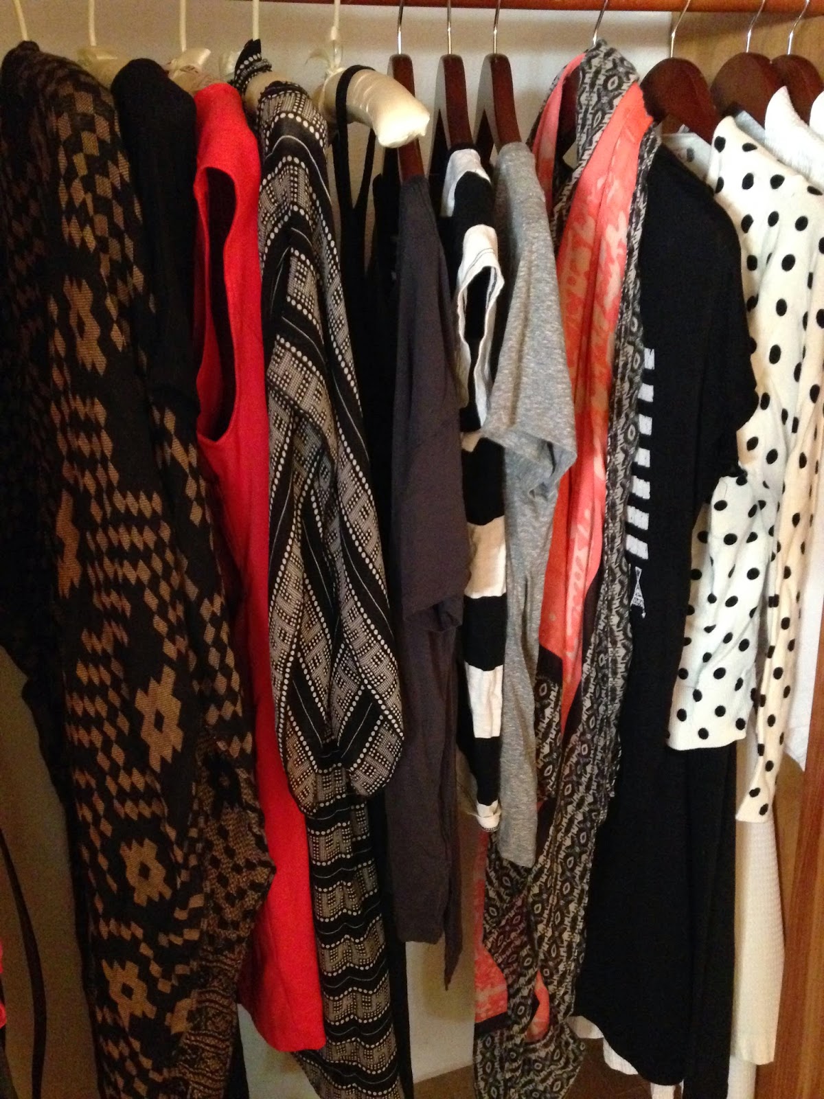What I realized in putting away summer clothes and switching closets is that I can sum up my fall/winter clothing into the following categories:- red-based long sleeved plaid button downs